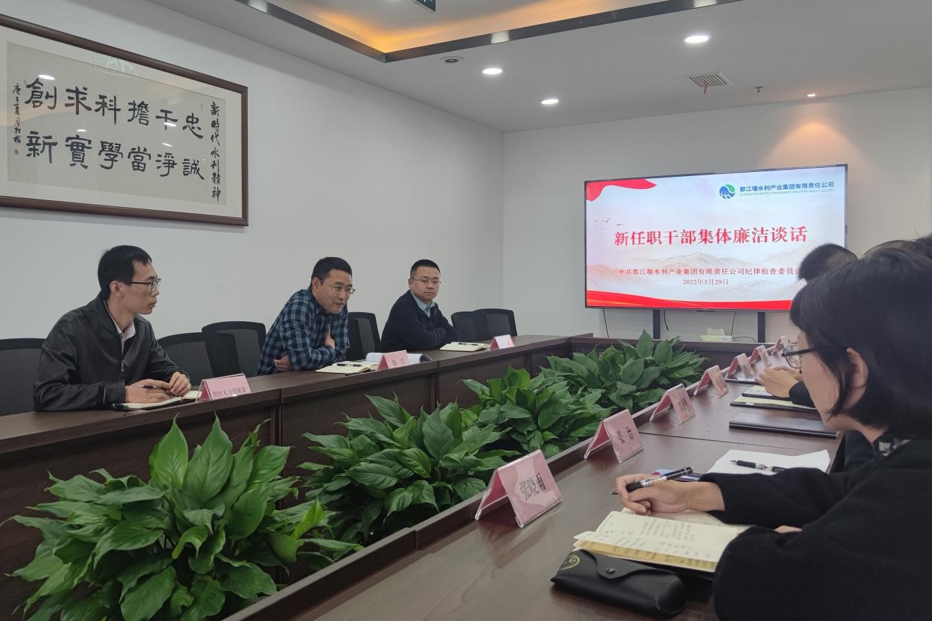 2022年3月29日,產業公司組織召開新任職干部集體廉潔談話會,公司黨委專職副書記、紀委書記陳雷主持會議并講話,紀檢監察部、組織人力資源部和近期新調整、任職的7名中層干部參加會議。